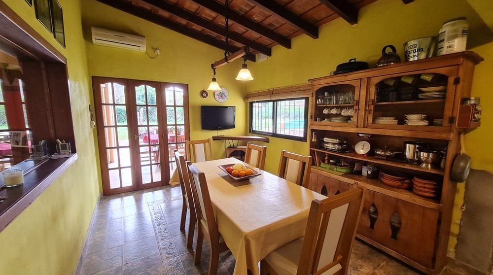 Estar, cocina-comedor, 2 dormitorios, 2 baños, galería semicubierta, cochera/quincho con parrillero, parque y piscina.