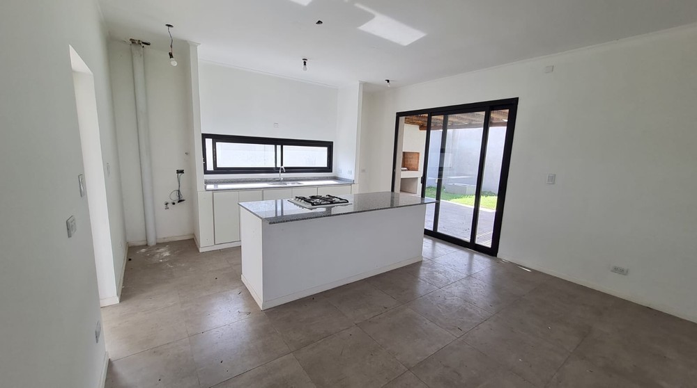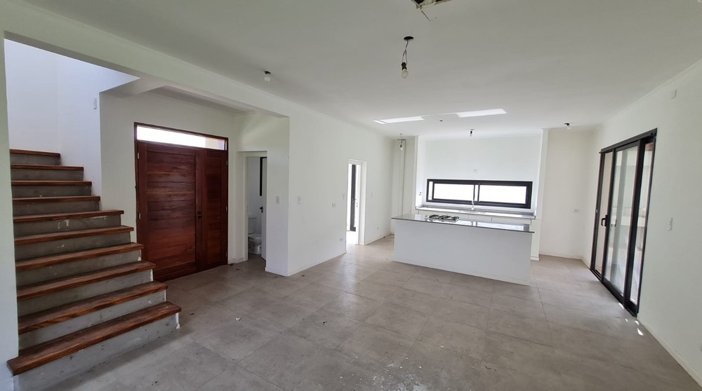 PB: Estar, comedor, cocina con isla, lav., baño social. Galería semi cubierta con parrillero, dormitorio en suite con vestidor, cochera semi cubierta p/dos vehículos.